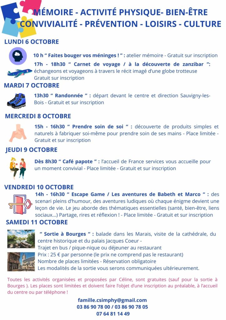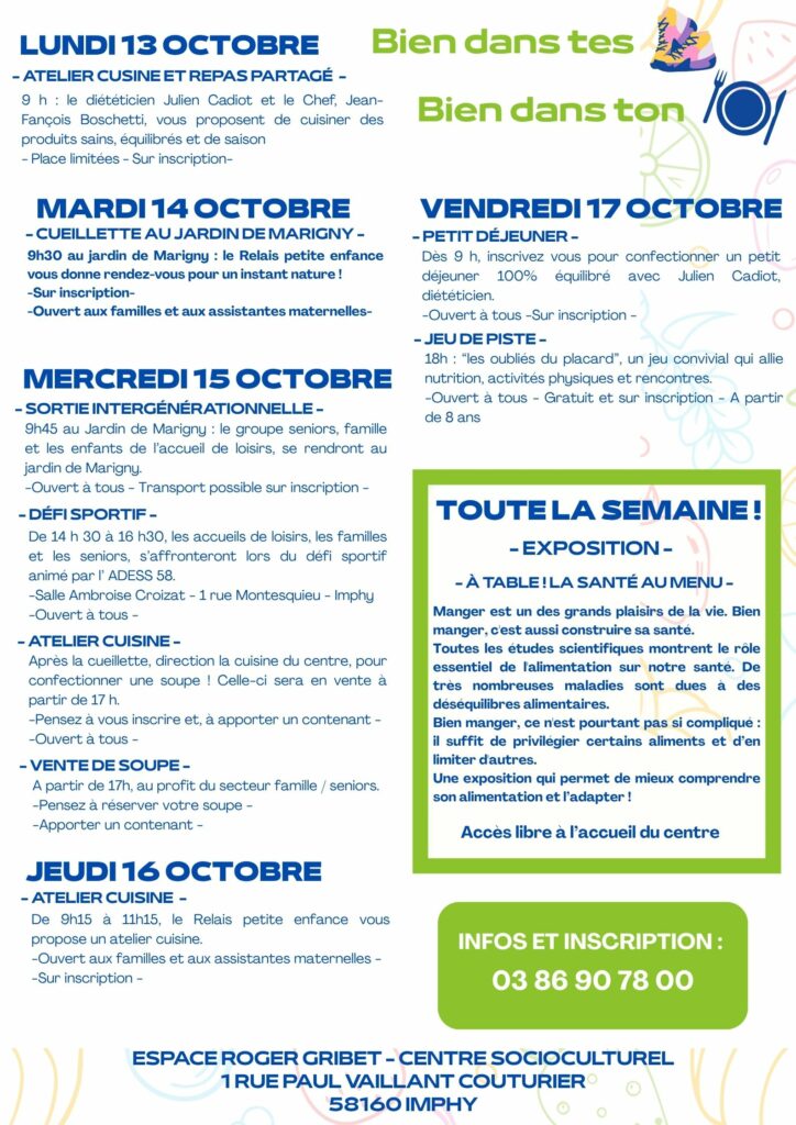 Informations et inscriptions :  03 86 90 78 00 / centre.social.imphy@gmail.com