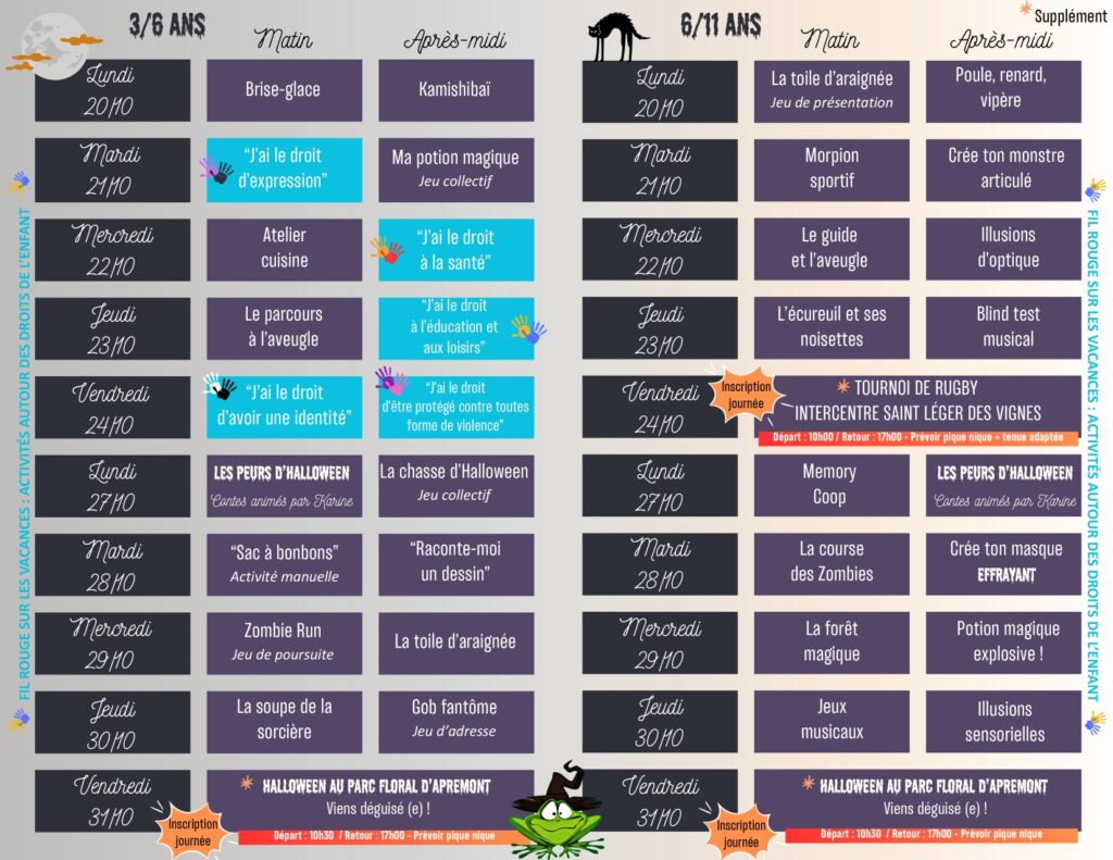 PROGRAMME VACANCES TOUSSAINT