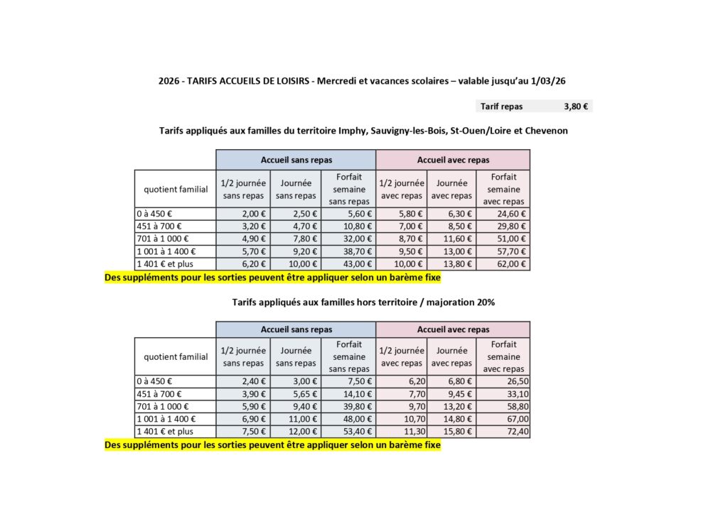 Les enfants sont accueillis tous les mercredis et durant les vacances scolaires. Pour bénéficier de l’accueil de loisirs, vous devez impérativement prendre votre adhésion annuelle auprès du Centre socioculturel (16€ pour les communes partenaires et 20€ pour les communes extérieures). Ensuite, les tarifs varient en fonction de votre quotient familial.